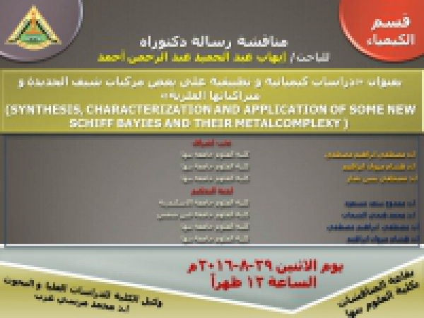The Doctoral Dissertation of Researcher/ Ehab Abd el-Hameed Abd el- Rahman was discussed on Monday, 29-8-2016 at 12 p.m in the conference hall of the faculty.